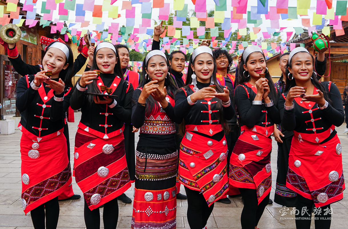 彝族在云南境內(nèi)約471萬人,是省內(nèi)人口最多、分布最廣的少數(shù)民族,主要聚居在金沙江、元江流域和哀牢山、無量山腹地。彝族是一個能歌善舞的民族,民間打歌、跳樂之風盛行,大三弦、跌腳舞久負盛名。火把節(jié)是彝族最具特色的民族節(jié)日。彝族村占地50余畝,三虎浮雕墻與虎頭內(nèi)祖師形象表現(xiàn)了彝族虎鷹文化。太陽歷廣場圖騰柱上有太陽、虎、火和八卦圖形象,周圍環(huán)繞著10個朝向不同的月球造型,外圓周有12生肖石雕。依山而建的“...